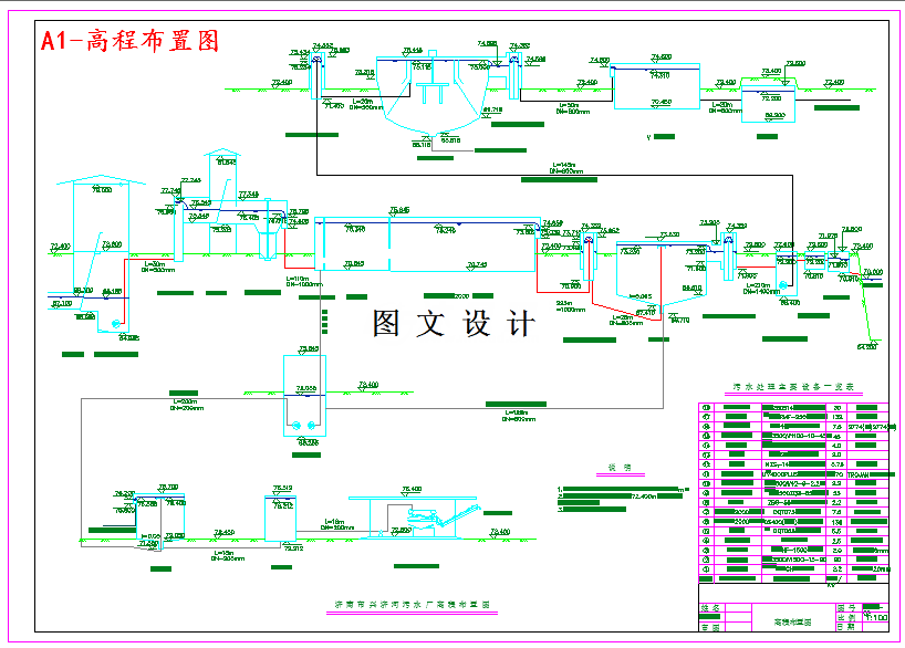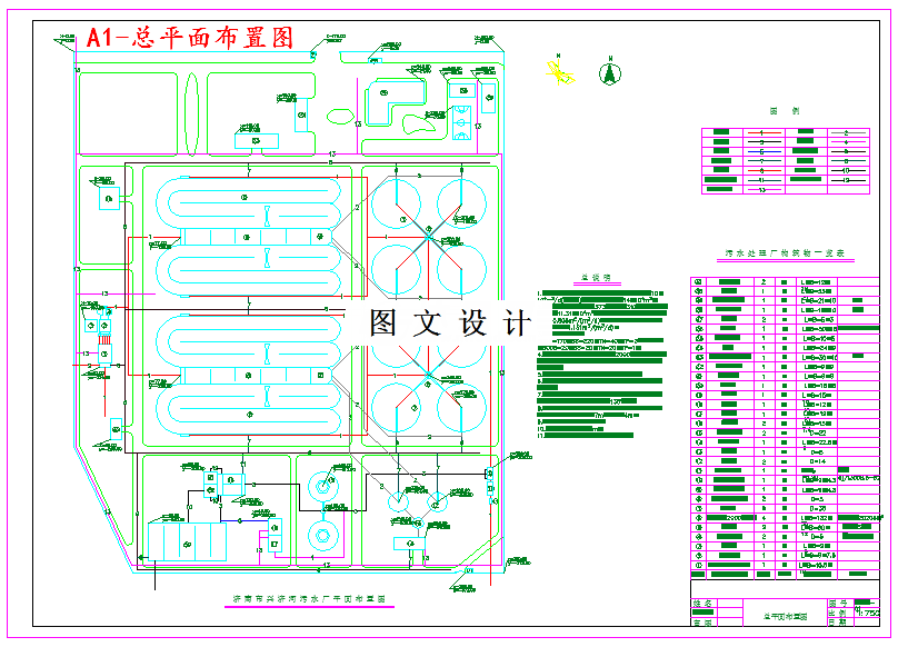 《给水排水工程专业》设计任务书 (一).排水体制:完全分流制 (二).污水量 1.城市设计人口 40 万,居住建筑内设有室内给排水卫生设备淋浴设备。 2.城市公共建筑污水量为 1.9×104m3/d。 3.工业污水量为 3.2×104m3/d,其中包括工业企业内部生活淋浴污水。 4.城市混合污水变化系数:日变化系数 K 日=1.2 总变化系数 Kz=1.4 (三).混合污水水质 BOD5=170mg/L COD cr=350mg/L SS=220mg/L TN=40mg/L NH3-N=30mg/L TP=3.0mg/L PH=6.5~7.5 重金属及有毒物质:微量,对生化处理无不良影响; 冬季污水平均温度为 10℃,夏季污水平均温度为 25℃
