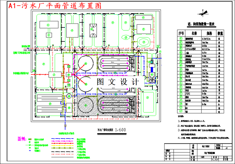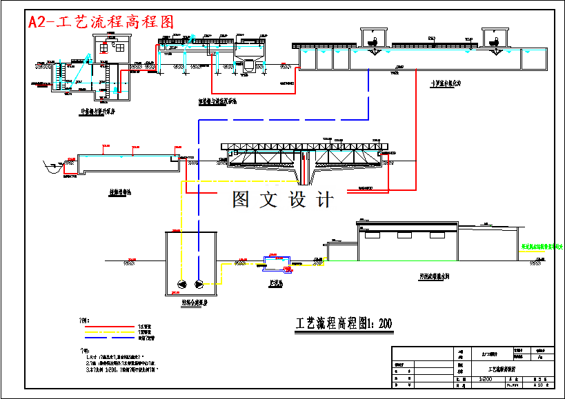 随着经济的不断发展,城市规模的扩大,水环境污染的问题日渐突出。水环境的污染影响人类的身体健康,制约了经济建设的进一步发展。因此近年来我国兴建了大量的污水处理厂,对于消除水体污染,改善环境起到了积极作用。DY县污水处理厂设计污水日处理能力为57000m3,属于中型污水处理厂。本设计采用Carrousel氧化沟法处理城市污水,其特点是工艺流程简单,构筑物少;处理效果稳定,出水水质好;污泥产生量少,污泥的性质稳定。设计中对污水处理工艺和污泥处理方案进行了选择论证;对污水、污泥处理构筑物进行了工艺设计计算;对废水处理厂进行了平面、高程布置,并绘制了平面布置图、高程图。