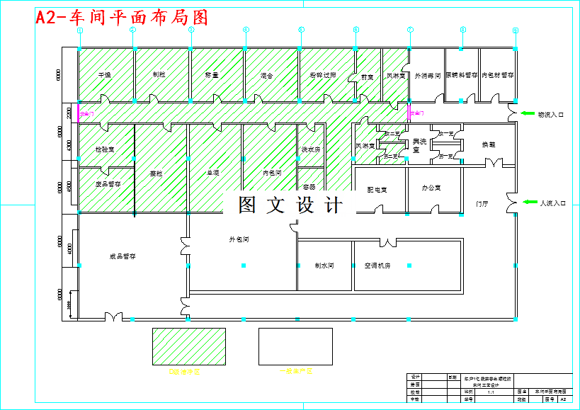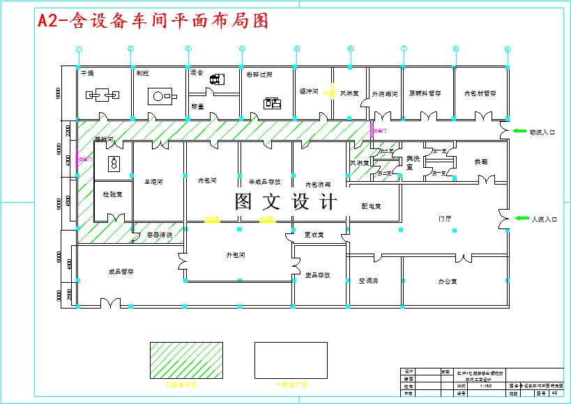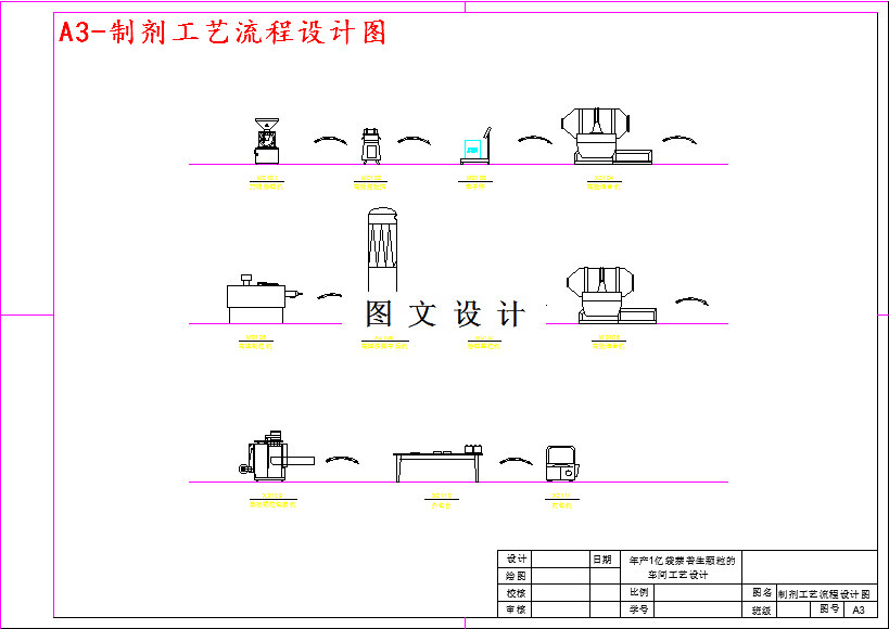 本设计任务为年产一亿袋萘普生颗粒的车间工艺设计。在GMP的相关规定指导下,根据生产需要,进行物料衡算,完成工艺流程设计,厂房车间的设计,设备平面布置的设计,总平面布置设计,洁净级别设计。在设计中,首先对萘普生颗粒原料药生产的设计依据进行了说明,然后对产品进行了介绍。结合工艺流程,绘制了带控制点的工艺流程图;其次,以设备为单位进行了物料衡算,列出了各设备的进出物料平衡表。以此为基础,进行了设备选型计算,确定各设备的型号及生产能力。此外,根据工厂所在地区的风向特点、安全、消防的需要以及根据所选的设备绘制了工艺设备安装的平面布置图,并对主管线分布进行了初步设计。在设计中,也建立消防等安全防范制度,最后对生产情况进行了详细的劳动组织和人员安排。最后,综合工艺中产生的废弃物性质和排放量,制定了综合利用和“三废”的初步处理方法。