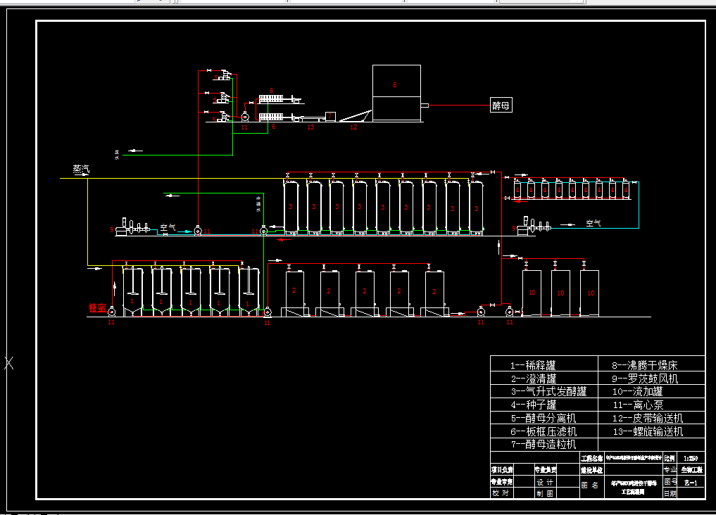 关键词:活性干酵母 发酵 工艺流程 车间布置 管道布置