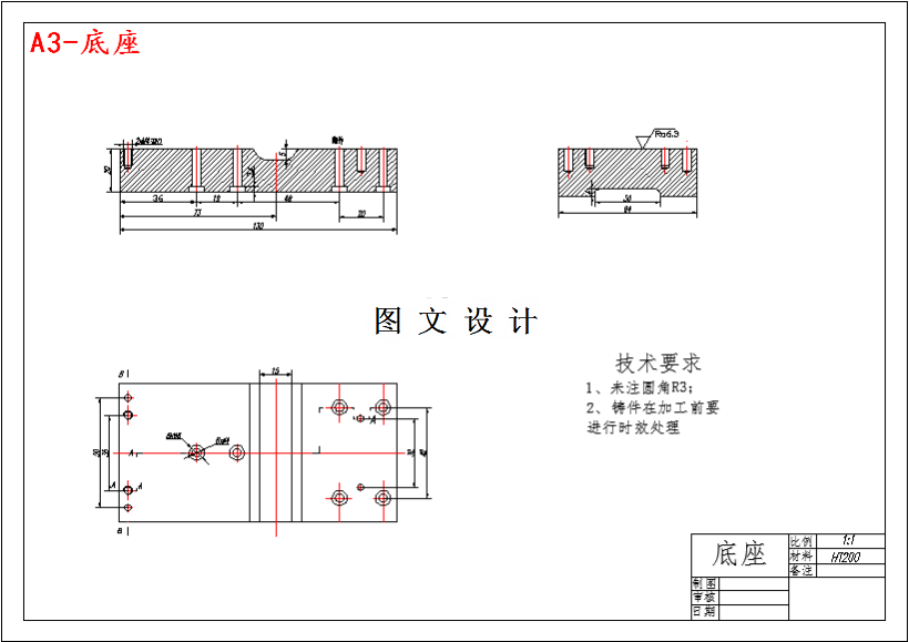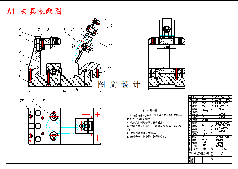 钻模板用于安装钻套在钻模上的位置。要求具有一定的强度和刚度,以防止由于刀具变形而影响钻套的位置精度和导向精度。所加工的是2-Ф6的孔,相对于底面有垂直度位置要求,位置精度要求较高,因此考虑到零件的具体要求和夹具的具体情况该工序为加工2-Ф6孔,该孔的公差等级为7级,精度要求较高。因此夹具的主要任务是保证加工精度,特别是保证被加工工件加工面与定位面之间以及被加工表面相互之间的位置精度。使用机床夹具后,这种精度主要靠夹具和机床来保证,不在依赖与工人的技术水平。 1)夹具的最大轮廓尺寸为130mm ×64mm×120mm。 2)特殊钻套与钻模板的配合尺寸为Ф12H7/n6。 3)特殊钻套与刀具的配合尺寸为Ф10H8/h6。 4)菱形销与定位衬套的配合尺寸为Ф6H7/f6,定位衬套与夹具体的配合尺寸为34+0.05。