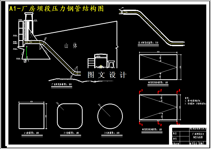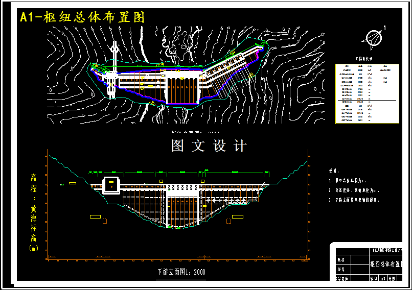 本次设计对位于我国西南地区的某水利枢纽进行以坝工为重点的工程设计。经过对几种可建造坝型经济比较和估算,最终确定建造高碾压混凝土重力坝。本设计的调洪演算基于水量平衡的原理,我采用图解法,在可行的三种泄流方案中,选出最佳的方案,进而定出相应的设计与校核洪水位及相应的下泄流量。随后我们进入主要建筑物的设计。确定枢纽的组成建筑物,通过定性的分析,确定大坝型式。首先是第一主要建筑物的设计阶段,确定出大坝的基本剖面,拟定地基的处理方案和坝身构造。然后依次进行细部构造的设计、稳定强度校核验算、材料力学法的分析、渗流有限元的设计,从各个方面验证设计剖面的可行性。坝体断面的设计过程中,须按照重力坝通过自身的重量来维持整体稳定的原则。本次设计中,基顶面是确定的,即为设计洪水位所在高程。坝体上游面垂直,在坝踵处出现折坡,溢流坝上游顶部采用倒悬布置。重力坝用材料力学法分析,求解坝体内的应力。坝体的稳定条件是坝体和坝基的最大应力须在坝段混凝土和基岩的容许应力范围之内。其次为第二主要建筑物的设计。确定泄水建筑物的轮廓尺寸,通过水力计算,在挑距和冲刷深度等方面去验证设计型式的可行性,完成细部构造的设计。