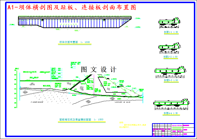 本次设计以坝工为重点,主要任务是泰安抽水蓄能电站上水库大坝、趾板及导流建筑物的设计。经过综合比较,确定了坝轴线位置,并选定坝型为钢筋混凝土面板堆石坝。设计主要内容概括如下: (1)介绍上水库工程地形地质情况,结合工程区的地质条件进行平面枢纽布置; (2)通过坝型比选,选择大坝的坝型。进行工程总体布置,详细进行上水库挡水建筑物的剖面设计,填筑材料设计以及一些细部构造,如防浪墙、面板、趾板、分缝止水等的设计,并采取相应的地基处理及防渗措施; (3)选择折线法进行边坡稳定分析,运用汇编语言程序,进行了坝体抗滑稳定分析,得出最危险滑动面及最小安全系数,通过相应水工规范,确认大坝是安全的; (4)介绍上水库库盆地形地质条件以及库盆开挖工程特性,进行简单的库盆开挖及回填设计,同时进行库盆的排水和防渗设计; (5)简单介绍导流洞的地形地质条件,进行导流洞的分段体型设计及闸门和细部构造设计,最后进行导流洞的封堵设计。