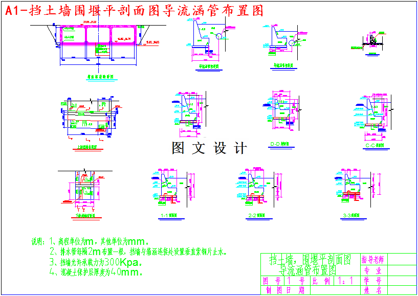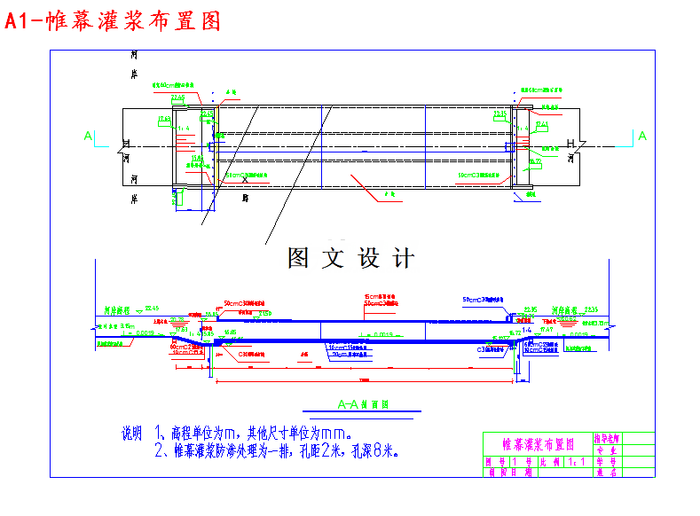 根据X县建设局规划,新建Y路须在Q桥下游H河A处跨越H河,并在H河右岸Y路北侧新建县消防大队训练场地。本工程范围内H河河道底宽18.5m,设计水深3.15m,50年一遇洪峰流量Q=210m3/s,箱涵设计过流量Qs=210m3/s。洞身为三孔C30钢筋混凝土箱涵,总净跨18m,单孔尺寸为6m×4m,每孔四角处设置40cm×40cm的倒角;上游河道底高程17.63m,河岸高程22.45m,河道底宽18.50m,箱涵采用缓坡式进口,涵洞进口底高程16.85m,进口处设置C25钢筋混凝土沉砂池(长3m,宽19m,深1.0m),沉砂池底高程15.85m,沉砂池按1:4坡度连接上游河道;两侧挡墙采用顶宽60cm的衡重式混凝土浆砌石挡墙,挡墙上墙背坡1:0.3,台宽2.0m,台高1.65m~2.0m,挡墙底板为0.5m厚C25钢筋混凝土底板,挡墙顶高程与上下游河岸高程相同;箱涵下游出口高程16.72m,下游出口处与河道按1:4坡度连接,下游河道底高程17.47m,河岸高程22.35m;上下游连接段底板均为0.6m厚C25钢筋混凝土底板。