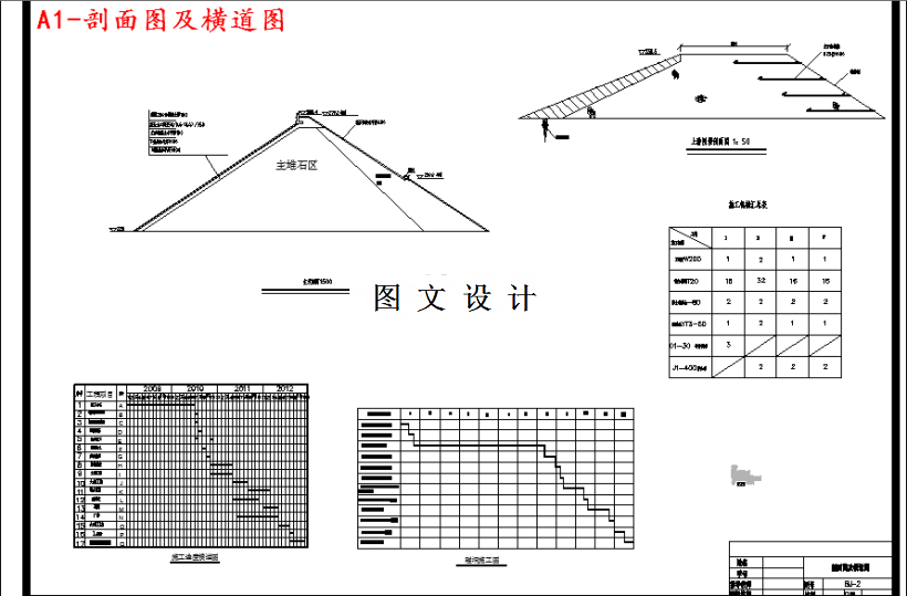 本工程以发电为主,同时兼顾灌溉、供水、防洪及养殖等综合利用效益的跨流域开发的水利水电枢纽工程。在明确了建设目的并具有了建设依据和条件后设计的枢纽概况如下:B江水利枢纽为复合土工膜防渗堆石坝最大坝高54.7米,装机6400kW,电站设计水头174米,保证出力1461kW,装有两台3200kW机组,正常蓄水位276.2m,主坝长214.5米左右,上游边坡1:1.5,下游边坡250高程以上1:1.52, 250高程以下1:1.55。 设计主要内容为: ⒈ 根据防洪要求,对水库进行洪水调节计算,确定坝顶高程及溢洪道尺寸; ⒉ 通过分析,对可能的方案进行比较,确定枢纽组成建筑物的型式、轮廓尺 寸及水利枢纽布置方案; ⒊ 详细做出大坝设计,通过比较,确定大坝的基本剖面和轮廓尺寸,拟定地基处理方案与坝身构造,进行水力、静力计算;进行专题一(趾板布置及计算)的设计; ⒋施工组织设计,编写招标文件,进行专题二的设计,对招标文件技术条款编制进行深入研究。复合土工膜防渗堆石坝是一种新的坝型,其防渗材料---复合土工膜的设计、施工、质量控制是该类坝型的技术关键,在本设计说明书第六章第三节有详细说明。本工程导流隧洞施工具有施工工作断面小,工期紧的特点,故其施工工艺是关键,在本设计说明书的有详细的说明。本次设计以一般混凝土面板堆石坝和一些已建复合土工膜堆石坝为参考,在注重各细部独立分项设计的同时,综合考虑了整体工程的统一性。在专题的编写中参考已建工程的趾板布置,对每块趾板的断面都进行详细的设计。在设计过程中既充分运用了所学知识,广泛参考了堆石坝设计、施工等相关书籍,并在规范规定内设计,体现了本设计的科学性、规范性。