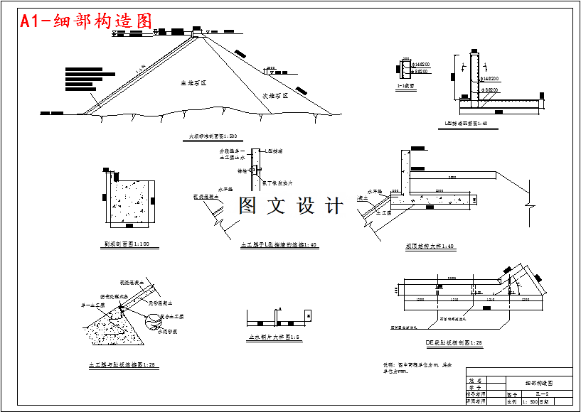 该设计主要是开发利用钟吕流域的水利资源,建设一个以发电为主,同时兼顾灌溉、供水、防洪及养殖等综合利用的跨流域开发的水利水电枢纽工程。在明确了建设目的并具有了建设依据和条件后设计的枢纽概况如下:钟吕水利枢纽复合土工膜面板堆石坝高50.6米,装机6400KW,电站设计水头174米,保证出力1461KW,装有两台3200KW机组,主坝长245米左右,上游边坡1:1.54,下游边坡1:1.54。复合土工膜面板堆石坝是一种新坝型,其防渗材料---复合土工膜的设计、施工、质量控制是该类坝型的技术关键,在本设计说明书第六章有详细说明。本次设计以一般为参考,堆石坝在注重各细部独立分项设计的同时,综合考虑了整体工程的统一性。在设计过程中既充分运用了所学知识,有广泛参考了设计施工方面的有关书籍。当然,这都是在规范规定内作的设计,体现了科学性、规范性。