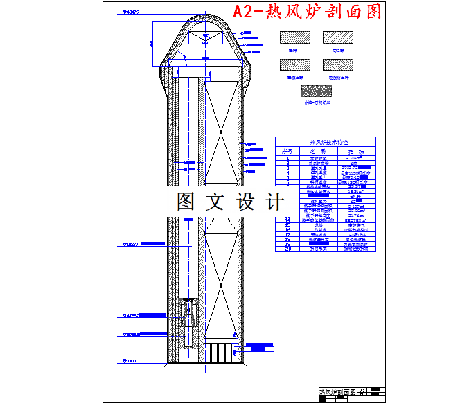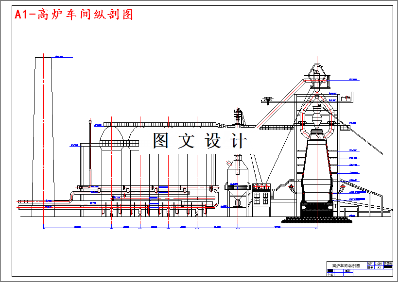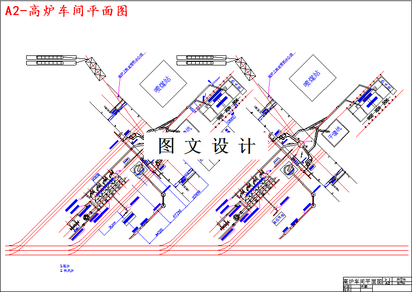 本设计是根据唐山地区条件设计的一个年产310万吨的高炉炼铁车间。整个车间的平面布置采用半岛式平面布置形式。设计的高炉有效容积是2200m3。其中高炉的炉衬设计方法采用的是均衡炉衬的方法,根据不同的冶炼条件砌筑不同的砖。上部采用的砖型有高砖,下部采用的是全碳砖炉底。冷却方式:炉身部分采用板壁结合的方式炉腰部分采用凸台冷却壁;炉缸和炉底采用光面冷却壁和水冷炉底结构。设计的热风炉采用传统改进型内燃式热风炉。蓄热式和燃烧室在同一炉壳内,中间用隔热墙隔开;采用眼睛型燃烧室。这部分同时包括热风炉各种设备和阀门的选取计算。上料系统采用的皮带机连续上料,同时增加了皮带的速度和宽度,满足高炉冶炼的要求。炉顶装料设备采用串罐式无料钟炉顶装料。喷吹系统增加了煤的数量,采用了单管路串罐式直接喷吹。煤气处理设备采用的是湿法除尘设备。所涉及的计算有高炉和热风炉尺寸的计算、高炉的物料平衡和热平衡计算以及热风炉风机的选择等。
