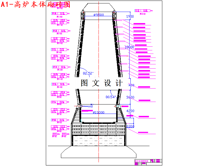 本设计是根据唐山地区条件设计的一个年产560万吨的高炉炼铁车间。整个车间的平面布置采用半岛式平面布置形式。设计的高炉有效容积是3500m3。其中高炉的炉衬设计方法采用的是均衡炉衬的方法,根据不同的冶炼条件砌筑不同的砖。上部采用的砖型有高砖,下部采用的是全碳砖炉底。冷却方式:炉身部分采用板壁结合的方式炉腰部分采用凸台冷却壁;炉缸和炉底采用光面冷却壁和水冷炉底结构。设计的热风炉采用传统改进型内燃式热风炉。蓄热式和燃烧室在同一炉壳内,中间用隔热墙隔开;采用眼睛型燃烧室。这部分同时包括热风炉各种设备和阀门的选取计算。上料系统采用的皮带机连续上料,同时增加了皮带的速度和宽度,满足高炉冶炼的要求。炉顶装料设备采用并罐式无料钟炉顶装料。喷吹系统增加了煤的数量,采用了单管路串罐式直接喷吹。煤气处理设备采用的是湿法除尘设备。所涉及的计算有高炉和热风炉尺寸的计算、高炉的物料平衡和热平衡计算以及热风炉风机的选择等。