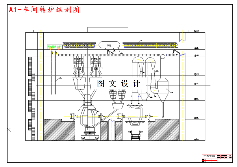 本设计为2座180吨氧气转炉炼钢车间。车间的各主要系统为:铁水供应系统、散状料供应系统、废钢供应系统、铁合金供应系统,烟气净化系统、浇注系统、炉外精炼系统等。这些方案都是经过比较而确定的比较合理的适合本设计的方案,并且采用了国内外的先进技术。本设计主要包括转炉炉型计算、氧枪计算、烟气净化系统计算、车间设备的计算以及各跨间的布置。另外本设计还采用了许多新技术如:溅渣护炉技术、铁水预脱硫、连铸连轧技术,这些技术均已达到国际先进水平。