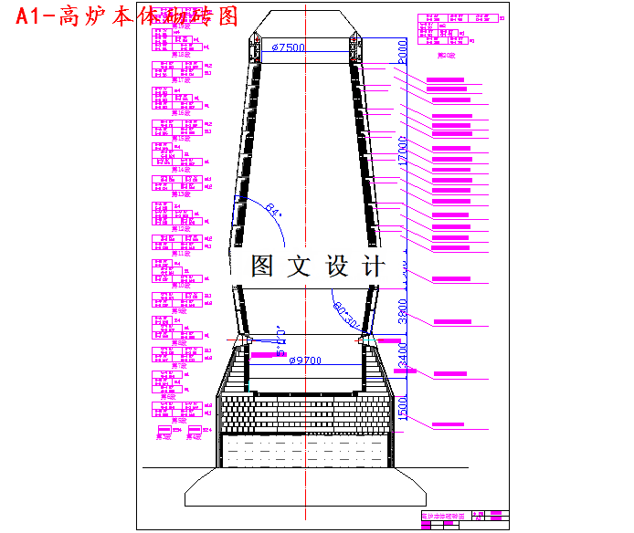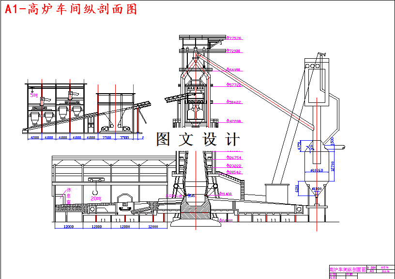 高炉炼铁是获得生铁的主要手段,是钢铁冶金过程中最重要的环节之一,在国民经济建设中起着举足轻重的作用。高炉是炼铁的主要设备,本着优质、高产、低耗和对环境污染小的方针,设计建造一座年产生铁270万吨的高炉炼铁车间,详细的对其进行了高炉设计,其中包括绪论、工艺计算(包括配料计算、物料平衡和热平衡)、高炉炉型设计、高炉各部位炉衬的选择、炉体冷却设备的选择、风口及出铁场的设计、原料系统、送风系统、炉顶设备、煤气处理系统、渣铁处理系统、高炉喷吹系统和炼铁车间的布置等。设计的同时还结合国内外相同炉容高炉的一些先进的生产操作经验和相关的数据,力争使该设计的高炉做到高度机械化、自动化和大型化,以期达到最佳的效益。