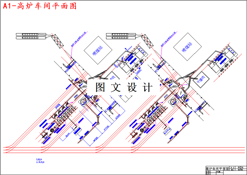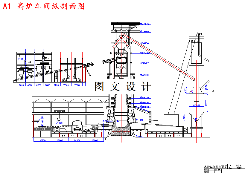 本设计是根据唐钢原料条件设计的一个年产450万吨的高炉炼铁车间。整个车间的平面布置采用半岛式平面布置形式。设计的高炉有效容积是3242m3。其中高炉的炉衬设计方法采用的是均衡炉衬的方法,根据不同的冶炼条件砌筑不同的砖。上部采用的砖型有高砖,下部采用的是全碳砖炉底。冷却方式:炉身部分采用板壁结合的方式炉腰部分采用凸台冷却壁;炉缸和炉底采用光面冷却壁和水冷炉底结构。设计的热风炉采用传统改进型内燃式热风炉。蓄热式和燃烧室在同一炉壳内,中间用隔热墙隔开;采用眼睛型燃烧室。这部分同时包括热风炉各种设备和阀门的选取计算。上料系统采用的皮带机连续上料,同时增加了皮带的速度和宽度,满足高炉冶炼的要求。炉顶装料设备采用串罐式无料钟炉顶装料。喷吹系统增加了煤的数量,采用了单管路串罐式直接喷吹。煤气处理设备采用的是湿法除尘设备。所涉及的计算有高炉和热风炉尺寸的计算、高炉的物料平衡和热平衡计算以及热风炉风机的选择等。