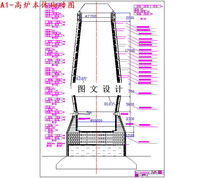按照设计要求,在唐山地区设计一座年产311万吨的炼钢生铁的炼铁厂。该厂的高炉车间由2座有效容积2241m3的高炉,车间布置形式采用半岛式布置。高炉炼铁生产工艺流程主要包括六个系统:高炉本体系统、高炉车间原料系统、高炉送风系统、高炉喷煤系统、煤气除尘系统渣鉄处理系统。其中高炉的炉衬设计方法采用的是均衡炉衬的方法,根据不同的冶炼条件砌筑不同的砖。冷却方式:炉身部分采用板壁结合的方式炉腰部分采用凸台冷却壁;炉缸和炉底采用光面冷却壁和水冷炉底结构。设计的热风炉采用传统改进型内燃式热风炉。蓄热室和燃烧室在同一炉壳内。这部分同时包括热风炉各种设备和阀门的选取计算。上料系统采用的皮带机连续上料,同时增加了皮带的速度和宽度,满足高炉冶炼的要求。炉顶装料设备采用串罐式无料钟炉顶装料。喷吹系统增加了煤的数量,采用了单管路串罐式直接喷吹。煤气处理设备采用的是湿法除尘设备。所涉及的计算有高炉和热风炉尺寸的计算、高炉的物料平衡和热平衡计算以及热风炉风机的选择等。本设计依据现有的经验结合国内外先进生产技术,对设备及相应的参数进行选择并作了具体阐述和计算,同时对高炉车间工艺布置作了比较详细的叙述,并绘制里高炉本体砌砖与冷却设备图、热风炉剖面图、高炉车间平面布置图、高炉车间总剖面图四张图。