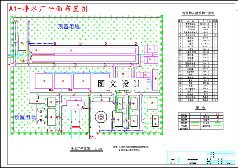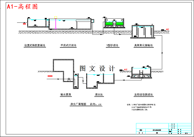 给水处理工程设计水质应满足《生活饮用水水质卫生规范》中检测项目指标要求,生活饮用水水质应满足一下要求:水中不应含有病原微生物,水中所含化学物质及放射性物质不应危害人体健康,水的感官性状良好。 生活饮用水水质应符合下列基本要求: 1)水中不得含有病原微生物。 2)水中所含化学物质及放射性物质不得危害人体健康。 3)水的感官性状良好。 其他物质:基本符合《生活饮用水卫生标准》规定的生活或工业用水水源水质要求。 2、出水水压 管网最大水头损失按0.294考虑。水厂出厂水压应≥0.58,以满足最不利点处服务水头0.28的要求。 1、给水系统的组成 给水系统由相互联系的一系列构筑物和输配水管网组成。它的任务是从水源取水,按照用户对水质的要求进行处理,然后将水输送到用水区,并向用户配水。 为了完成这些任务,给水系统常由下列工程设施组成:取水构筑物、水处理构筑物、泵站、输水管渠和管网、调节构筑物等。 2、影响给水系统的因素 1)城市规划的影响; 2)水源的影响; 3)地形的影响。