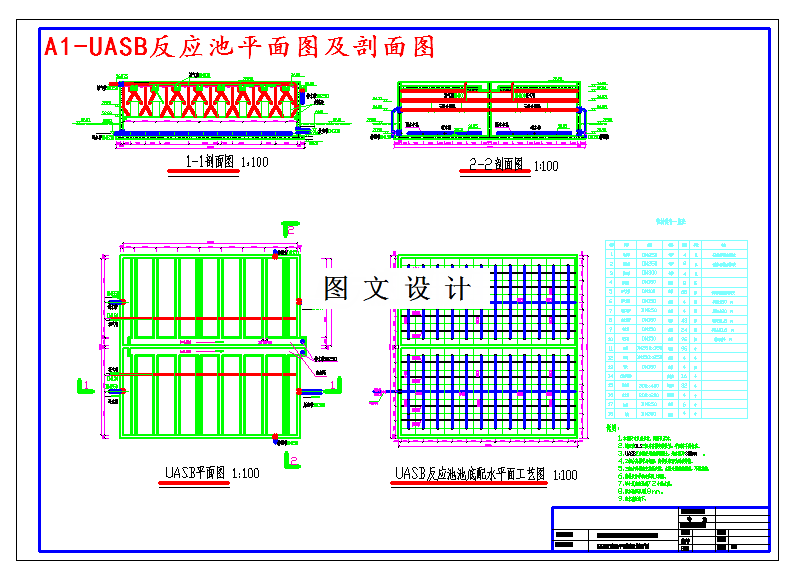 污水回用10000 m3/d,其余出水排入就近的河流。 根据当地资料及工艺方案比较,采用UASB-CASS处理工艺。废水经过格栅后,除去较在的悬浮物及漂浮物,进入调节池,经泵提升 至UASB反应器进行厌氧发酵,然后现进入CASS反应器进行好氧处理。格栅由一组平行的金属栅条或筛网制成,安装在废水渠道的进口处,用于截留较大的悬浮物或漂浮物,主要对水泵起保护作用,另外可减轻后续构筑物的处理负荷。设计流量Q =16000m3/d = 0.185m3/s ; 取用粗格栅,栅条间隙d = 20mm ; 格栅安装角度α= 75°,栅前流速0.7 m/s ,过栅流速0.8m/s ; ss去除率为10%。 单位栅渣量W = 0.07m3/103 m3 废水 。