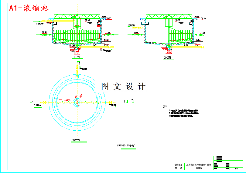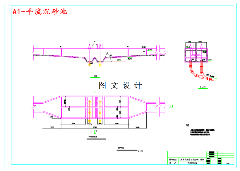 本设计是关于某市北马路污水处理厂的设计。根据毕业设计的原始资料及设计要求对出水水质的要求:即要求脱氮除磷,出水达到一级排放标准,确定A2/O和三沟式氧化沟两大污水处理工艺进行工艺设计和经济技术比较。 一级处理中,进厂原水首先进入中格栅,用以去除大块污染物,以免其对后续处理单元或工艺管线造成损害。本设计设置中格栅,中格栅后有污水提升泵提升污水进入细格栅。然后进入平流式沉砂池,用以去除密度较大的无机砂粒,提高污泥有机组分的含率。 以上的污水处理为物理处理阶段,对A2/O和三沟式氧化沟两大工艺是相同的。下面分别对这两大工艺的生物处理部分进行简要介绍。 三沟式氧化沟设计为厌氧池与氧化沟分建。氧化沟三沟交替进水,且兼具二沉池的作用。厌氧池释放磷。随着曝气器距离的增加,氧化沟内溶解氧浓度不断降低,呈现缺氧区好氧区的交替变化,即相继出现硝化和反硝化的过程,达到脱氮的效果。同时好氧区吸收磷,达到除磷的效果。 A2/O工艺的生物处理部分由厌氧池、缺氧池和好氧池组成。厌氧池主要功能是释放磷,同时部分有机物进行氨化。缺氧池的主要功能是脱氮。好氧池是多功能的,能够去除BOD、硝化和吸收磷。 通过投资概算,运行费用的计算,经济比较及技术比较等最终确定氧化沟工艺为最佳方案。 剩余污泥则经污泥提升泵提升至重力浓缩池。以降低污泥的含水率,减小污泥体积。泥经浓缩后,含水率尚还大,体积仍很大。为了综合利用和最终处置,需对污泥进行干化和脱水处理。 在完成污水和污泥处理构筑物的设计计算后,根据平面布置的原则,综合考虑各方面因素进行了污水厂的平面布置。据污水的流量对连接各构筑物的管渠进行了选径、确定流速以及水力坡降,然后进行了水力损失计算。据水力损失计算对污水和污泥高程进行了计算和布置。 在最后阶段完成了对平面图、高程图及各种主要的构筑物的绘制。
