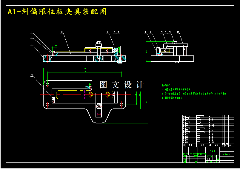 这次设计的是纠偏限位板,包括被加工工件的零件图、工件的毛坯图、夹具装配图、夹具体图各一张,机械加工工艺过程卡片和与工序卡片各一张。纠偏限位板就是在张拉过程中固定锚具夹片的作用,工艺工装的设计与改良直接影响着其质量与性能。 首先,进行纠偏限位板作用介绍和工艺分析。然后,根据零件的性质和零件图上各端面的粗糙度确定毛坯的尺寸和械加工余量。最后拟定钻孔的工艺路线图,制定该工件的夹紧方案,画出夹具装配图。
