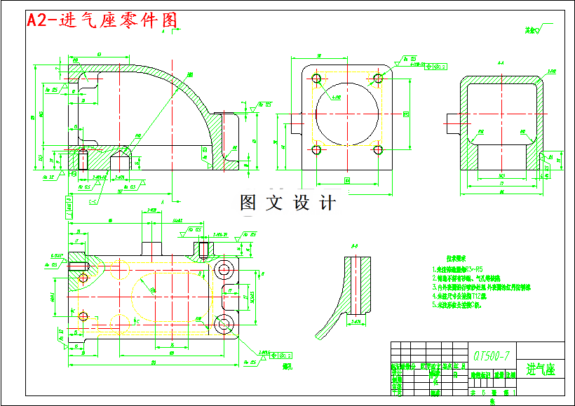 该设计的主要内容为进气座的加工工艺以及夹具设计。首先按照机械加工工艺规程相关要求,在所给定的生产条件下,通过对定位基准、加工方法、加工阶段、加工顺序、工序集中与分散的分析,确定了进气座的加工工艺路线。紧接着遵循夹具设计的理论方法,结合进气座的尺寸、形状、加工要求等,分别设计了铣左端面和钻底面6孔的专用夹具各一套。在制定夹具结构方案的过程中,对有关定位原件、夹紧结构以及夹具体的总体布局等方面的几个不同方案经过认真地分析与比较,确定了较为合理且实用的方案。铣左端面夹具采用支撑板定位,在右端面用单螺旋夹紧机构夹紧;底面6孔加工夹具采用定位销与平面配合定位,侧面用单螺旋夹紧机构夹紧。通过此方案可以在零件安放容易的条件下使孔的定位准确、夹具的操作容易,可以保证零件的加工精度。