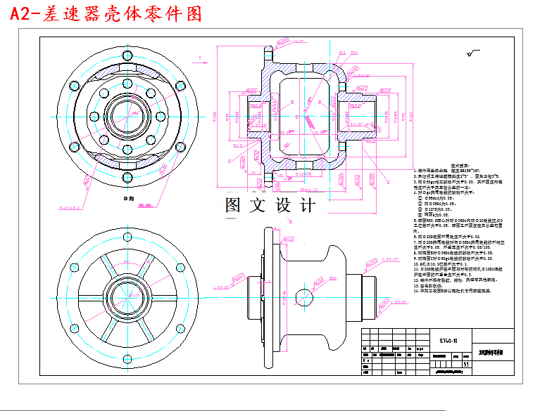 本次设计的主要内容是拖拉机差速器壳体的工艺和夹具设计。首先按照机械加工工艺规程的要求,通过对定位基准、加工方法、加工阶段、加工顺序、工序的集中与分散的分析,确定了差速器壳体的加工工艺路线。紧接着遵循夹具设计的理论方法,结合差速器壳体的尺寸、形状、加工要求等,分别设计了钻36和8-10.2孔的专用夹具各一套。在加工工艺的设计中要首先对该零件进行全面分析,在明确了零件的结构后设计出毛坯,以及选择零件的加工基准,设计出工艺路线;然后对加工零件的各个工步的工序进行相关尺寸的计算,选择决定各个工序的工艺装备及切削用量;接着进行专用夹具的设计,选择设计出夹具的各个组成部件,如定位元件、夹紧元件、引导元件、夹具体与机床的连接部件以及其它部件;最后计算出夹具定位时产生的定位误差,分析整体夹具结构的合理性。
