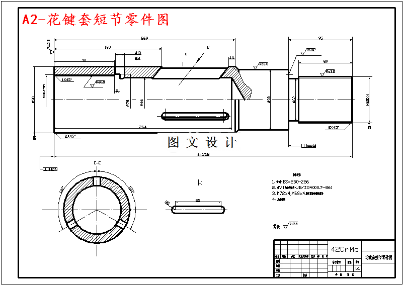 本次设计是关于花键套短节加工工艺分析和专用夹具体的设计,在加工工艺的分析时,需要确定加工方案和基准的选择,并确定工序尺寸和工时,最后编写工艺和工序卡牌呢,从而完成整个零件的加工工艺分析过程。设计专用夹具主要是为了在轴上加工Ф13深16的孔,通过采取一挡板、两V形块的定位,可以解决工件在机床上的空间位置要求限制了。在定位时,只限制了5个自由度,属于不完全定位,但却符合加工要求。通过专用夹具,使零件的大批量生产的生产效率大大提高。