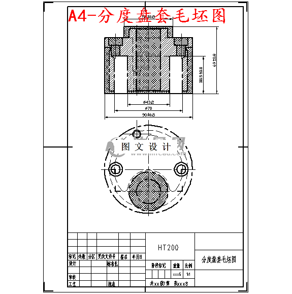 1.该零件为分度盘套,零件材料为HT200,强度较好,结构简单。 2.零件外形尺寸较小,钻2-9(锪14),钻孔切削力较小,夹紧力要求不高。 3.该零件前期各表面已完成加工,本工序孔径要求不高但加工位置尺寸精度有一定要求,设计夹具精度和复杂程度不宜太高,尽可能减低制造成本。 4.该零件为中批,本工序完成单一直径钻孔。