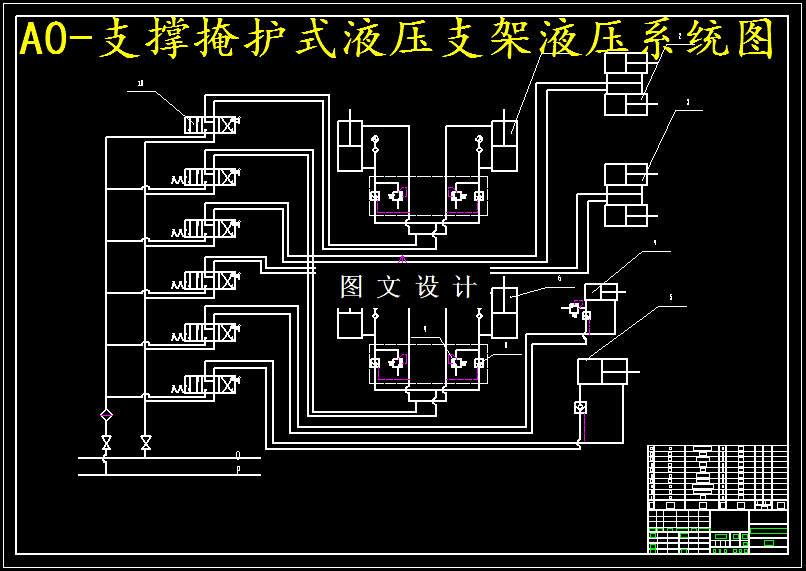 本次设计主要是针对支撑掩护式液压支架总体设计以及液压系统的设计。本设计首先对液压支架整体和零部件结构进行分析,对液压支架结构尺寸进行确定,再对液压支架系统进行设计分析。重点是四连杆机构的确定、液压支架基本技术参数确定、顶梁支护强度以及底座接地比压确定,最后,对此液压支架的系统进行设计。通过设计对液压支架整体和主要部件有了清楚的认识,掌握了用CAXA绘图的技巧,了解了支架系统,并且绘制出了支撑掩护式液压支架的系统原理图。
