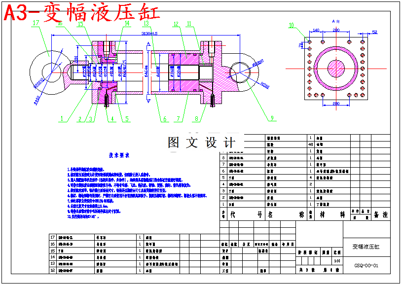 本次设计任务是设计出QLY55型轮胎式起重机的总体方案和液压系统,并完成其起升机构和变幅液压缸的结构设计。给出了55吨液压轮胎式起重机的总体和液压系统的详细设计过程与结果。首先,在总体设计阶段,对起升机构、回转机构、变幅机构、伸缩机构、支腿收放机构等进行方案设计,选择合理的机构方案。其中,对起升机构进行详细设计,包括各个部件参数选择和计算及标准部件的选择。液压系统设计包括对各个机构所涉及到的所有液压系统回路进行设计和选择,并对各个液压部件进行参数设计,选择合适的液压件,使液压系统满足工作要求和强度。