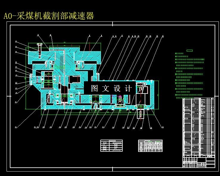 本文对采煤机在国民经济中的作用以及国内外采煤机的种类和主要机型进行了综合阐述,对采煤机现存的问题进行分析和研究,并且提出了煤机行业应该创新的四个技术方面。 本文主要说明了我设计的采煤机总体方案的拟定和截割部摇臂齿轮减速器得设计和计算。 本文主要分为两部分。第一部分是采煤机的总体方案设计。主要对采煤机得工作机构、总体结构方案、基本参数、附属装置和截割部传动系统进行了说明和拟定。 第二部分是采煤机截割部摇臂箱得设计。主要对摇臂箱中有关齿轮、轴、轴承和行星齿轮进行了设计与校核计算。
