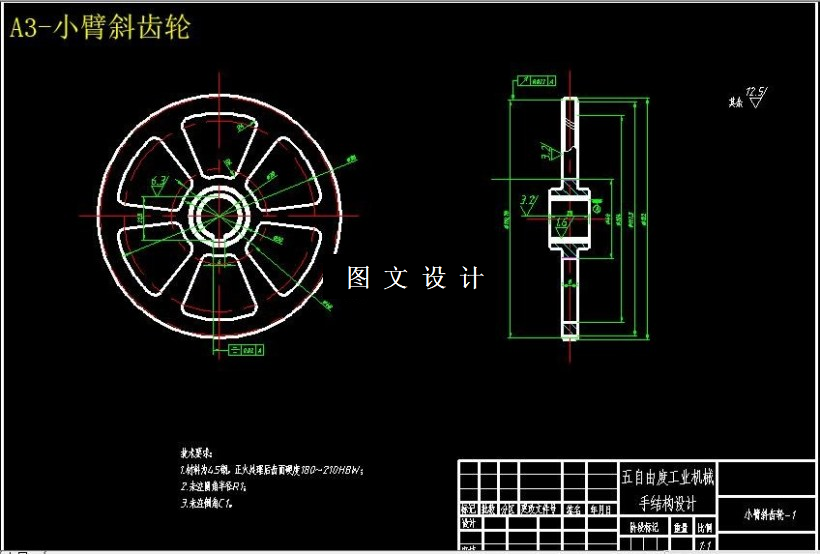 机械手是机器进化和科学技术发展的必然结果,机械手从问世到现在经过50多年的发展,在国民经济,科学研究以至整个社会领域发挥着越来越显著的作用,成为人们生活学习中的好帮手,近十年来各种用途的机械手得到了更广泛的应用,如焊接、喷漆、搬运等用于制造车间的工业机械手。 学习了机械手技术知识,查阅了大量的文献资料,对国内外机械手、主要是工业机械手的现状有了比较详细的了解。在此基础上,结合本人的设想,和设计工作中需要解决的任务,本文主要研究机械手总体结构进行设计,主要进行以下工作: 本体结构设计,本机械手手臂结构方案确定后要运用AutoCAD把其平面装配图做出。