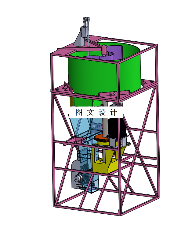 该自动盛菜机主要采用随机选取的方式进行盛菜,主要由取菜装置、测量装置、出菜装置等组成。其中取菜装置主要由电机、齿轮组、盛菜箱、刮菜板等组成,通过旋转盛菜箱的方式进行取菜;测量装置主要采用光电传感器实现,主要以固定容积的方式实现菜量的控制;出菜装置为核心机构,由滑块连杆机构、推拉式电磁铁等组成,通过阀门的开合对菜品的位置进行控制。