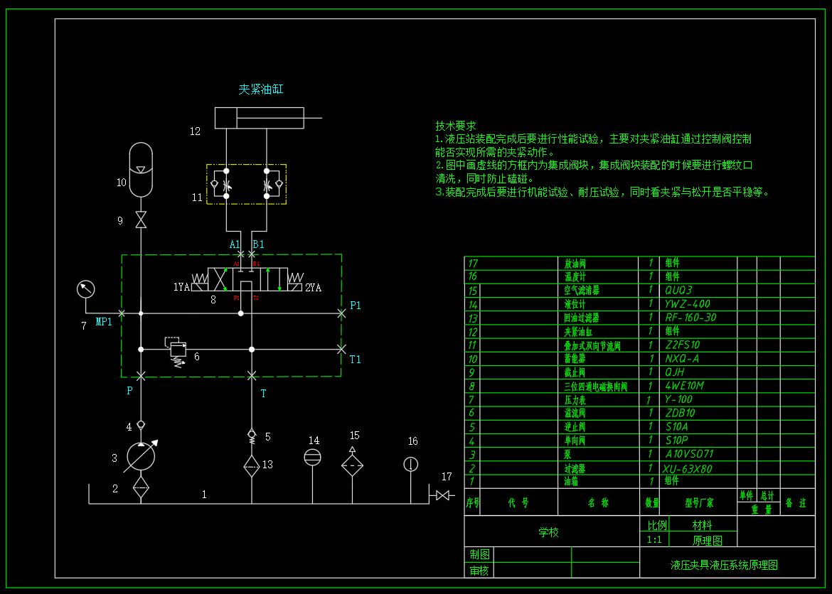 包含三维NX12.0整套夹具三维设计,包含二维CAD机构运动简图和液压夹具液压系统原理图设计,包含设计计算。 液压系统的系统压力为6-7MPa,本设计选择6MPa。夹紧力F为10000N,油缸受力为17084N,夹紧时间为0.045s,松开时间为0.045s。