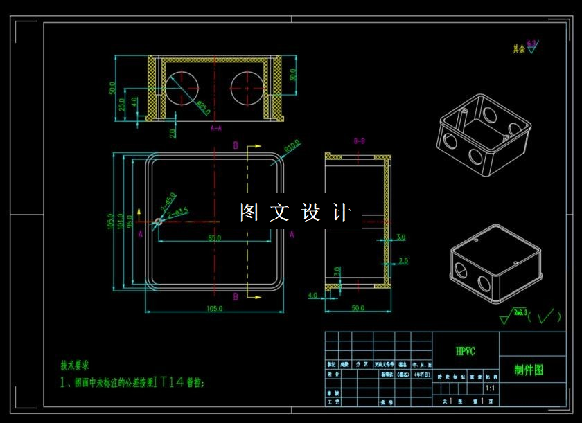 本次设计是以“接线盒”塑件为原始文件,进行注塑模具设计。首选针对此塑件,进行结构分析,确定其塑件结构适合采用注塑模具结构生产,然后选择合适的高分子材料与型腔的出模数量。结合模具设计原则与设计规范,选择分型面并且分模完成成型系统零件设计,对浇注系统的设计方面,力求充填均匀,流道废料少、短。冷却系统均匀的分布在塑件的周边,使得温度冷却合理,在脱模顶出机构上,采用均匀分布顶出系统,让塑件能够均匀的受力顶出脱模。在选择标注模架系统方面,采用了国内最大的模具企业生产的龙记GB国标标准模架系统,能够保证制造周期短,制造精度高、效率高的特点。
