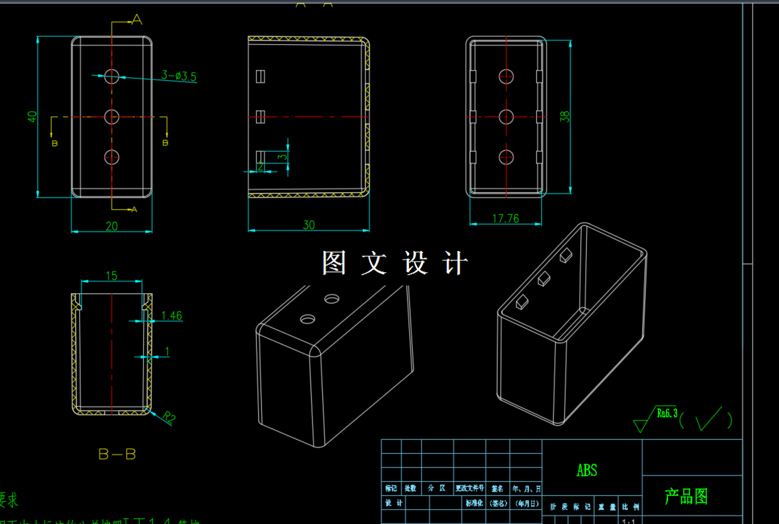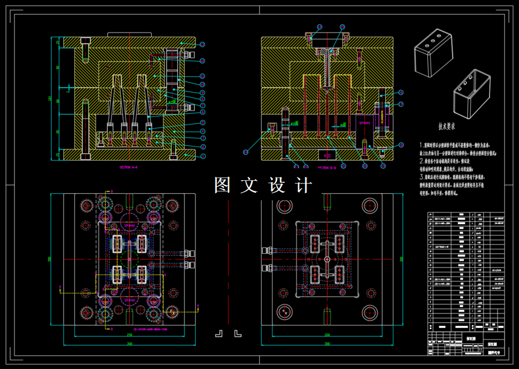 本文研究针对小型电开关盒盖塑件产品设计制造专用注塑模型设备,依据国家机械行业的相关标准和设计文件,对模具装置的相关在零件进行设计制造,为了能够简化整套模具装置的生产制造难度,对能够选用标准件的有关部件参考相应标准进行合理选择,非标零件的设计制造也要尽量简单,易于生产,在一定程度上将模具装置的生产制造成本降至最低。 第一步,研究分析小型电开关盒盖塑件产品的相关结构特点,结合其实际的使用环境,分析各种生产制造材料的性能参数,对生产制造材料进行合理选用,最后确定采用ABS材料生产加工本文设计生产的塑件产品,并结合实际生产制造情况,设计制造成型加工生产的相应工艺和工序方案。 第二步,设计确定注塑模具装置的整体设计方案,设计确定模具装置的分型面,并对模具装置的定位机构进行设计制造。除此之外,对模具装置的相关辅助机构以及所有零部件进行设计制造,并绘制完成模具装置的总装配图以及各个主要零部件的零件图。