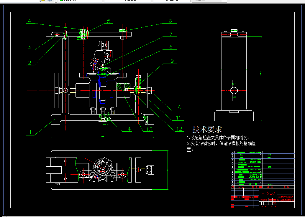 夹具为钻床夹具,钻床夹具的设计内容是关于加工两侧圆台Φ8孔的夹具设计。包括其设计方案,总体说明,夹具的构造特点及原则;夹具定位、夹紧方案的选择及设计,误差计算,夹紧力计算等内容以及夹具装配图和夹具体零件图的绘制。