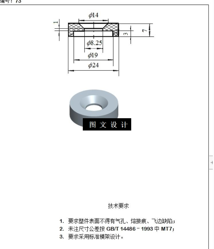 根据塑件的外形结构特点,选分析注塑工艺,进行了模具型腔出模数量的确定,完成了流道浇注系统的设计,进行模具温度调节冷却水道设计,对于成型零件的设计方面,选择了分型面,确定了型芯和型腔的结构设计和成型尺寸的计算与校核。欢迎下载学习