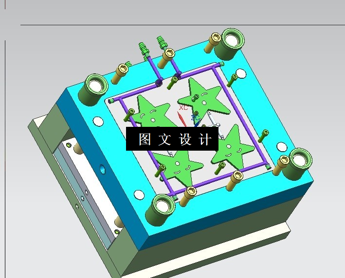 玩具海星塑件采用的材料是改性聚苯乙烯,是一种热塑性材料,符合注射模的要求.它的精度要求不高,一般4级就能满足要求.根据任务书要求,该制件属于打批量生产,所以采用了一模四腔设计,凹型芯开设在定模板和中间板之间.采用普通浇注系统侧浇口的形式.根据估算制件和浇注系统凝料的重量.选用HTF200J/TJ型注射机,