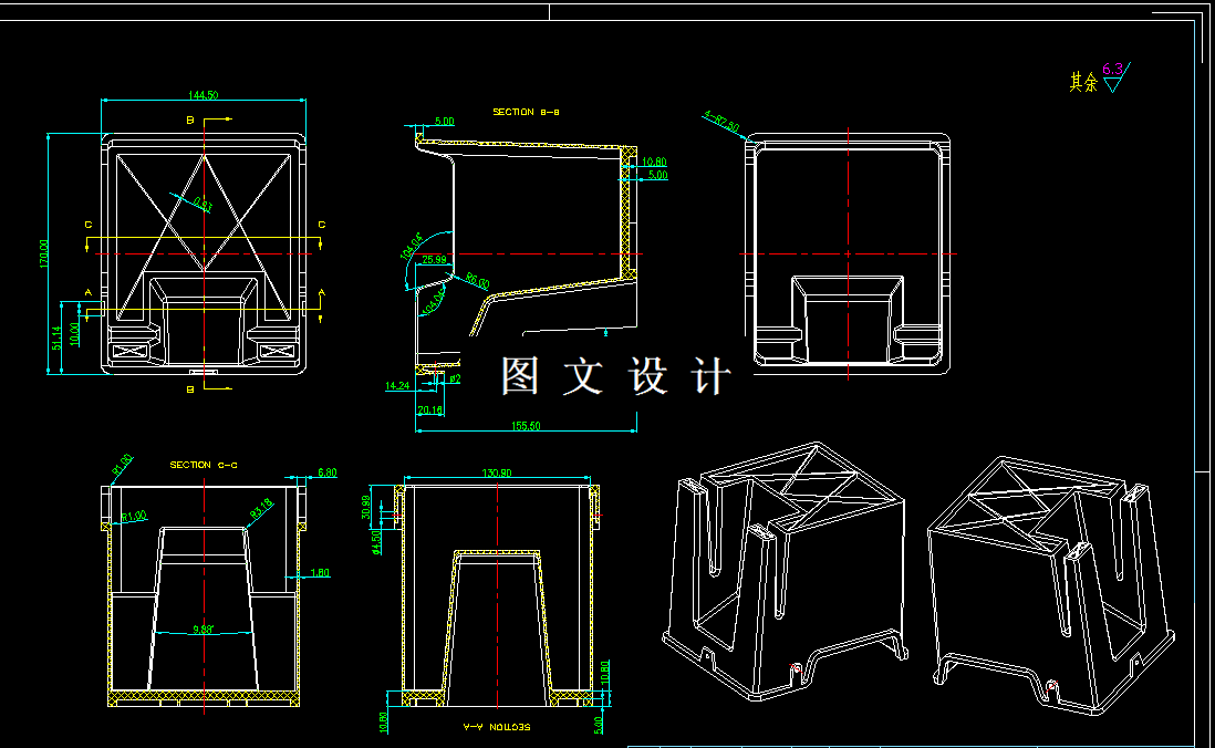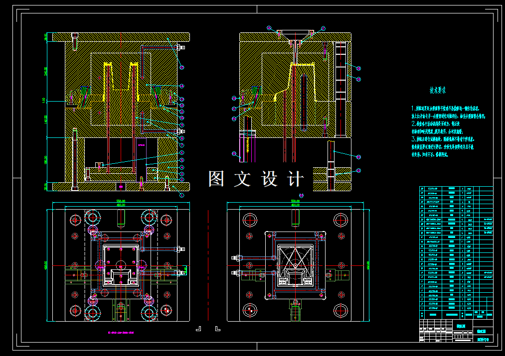 该设计采用侧抽芯机构和冷却水道布置对称,易于安装,整体受力均匀。本次设计利用计算机辅助设计注射模具,分为注射模具的机械设计部分和CAD两部分。第一部分,机械设计部分包括:注射机的选用、浇注系统、动、定模的结构、脱模和顶出系统、排气系统和冷却系统等设计。第二部分包括使用AUTO CAD 完成模具的二维制图