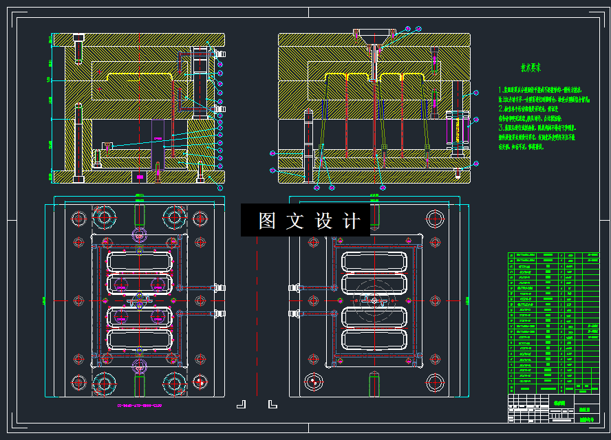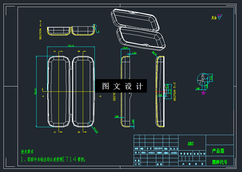 本文是关于眼镜盒盖注塑模具的设计,塑件虽然不是很复杂,但其设计的难点在于侧向抽芯机构和浇注系统的设计。主要包括分型面的选择,浇注系统的设计,成型零件的计算,侧向抽芯机构的设置,顶出机构和冷却系统的设计等,此外还对其脱模力进行计算,并选择合适的注塑机。