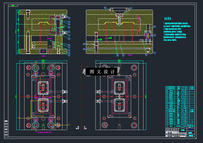 本次设计中,采用了计算机辅助设计软件,其中包括二维设计软件AutoCAD绘制模具的总装图与非标的零件工程图,采用了三维软件进行了塑件的建模与整体装配建模。 本次设计来源于生活实践中,应用非常广泛,采用计算机辅助设计软件大大的提高了设计效率。通过完成了对应设计参数的计算与校核。经过计算校核,本套设计满足实践需求。