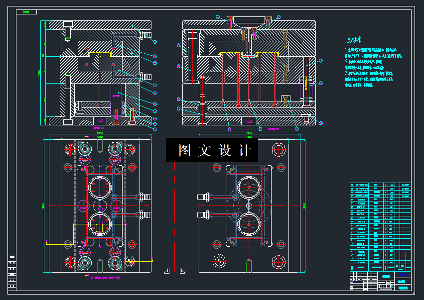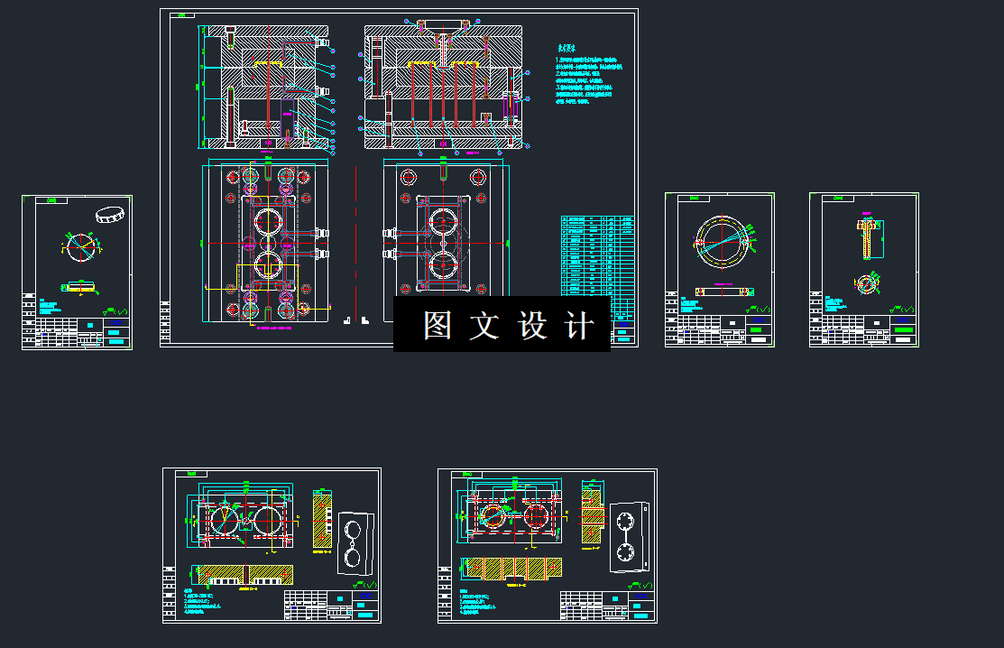 贮油杯盖注塑模具设计图纸,根据经济性与模具设计原则规范要求,采用了一模二腔的结构布局形式,该方案结构简单可靠。对于本文重点的模具设计七大系统,分别采用了侧浇口的浇注系统;采用冷却水道来降低温度,控制注塑成型周期;对于顶出脱模系统的设计上,仍然采用最高效的顶杆顶出机构来实现;