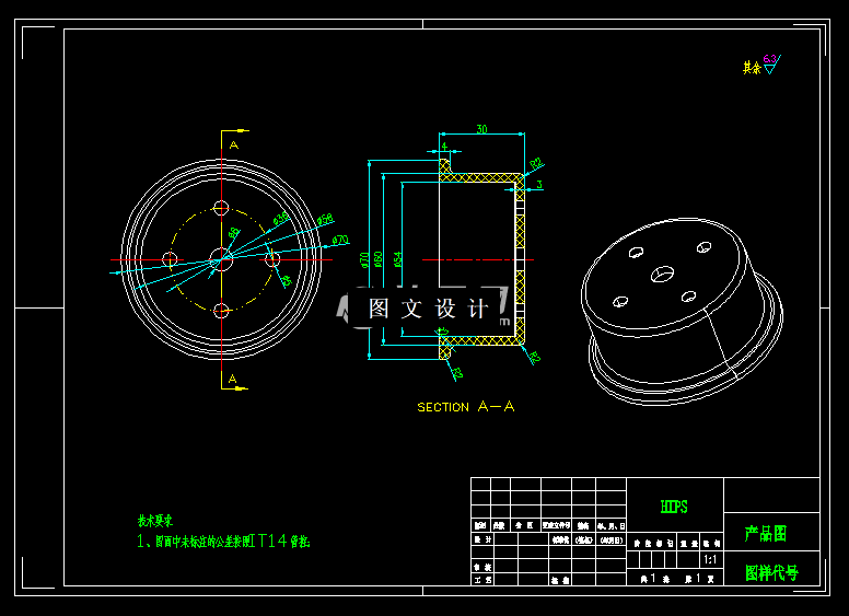 塑料仪表盖注塑模具设计图纸(直径70),本次设计在针对产品进行工艺性分析后,确定模具分 型面、 型腔数目、 浇口形式、 位置大小; 其中最重要的是确定型芯和型腔的结构, 以及它们的定位和紧固方式。