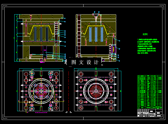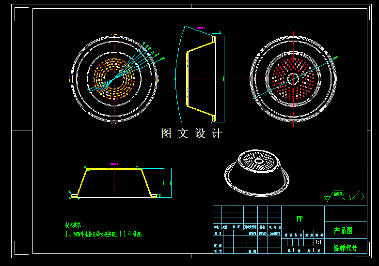 淘米盆注塑模具设计图纸-一模一腔,本文是淘米盆注塑模具设计的详细过程,包括塑件的工艺性能分析、注塑成型模具设计、模具与注塑机的关系、注塑模成型零部件设计与计算、模具成型零件的设计与计算、试模与模具的维修等。