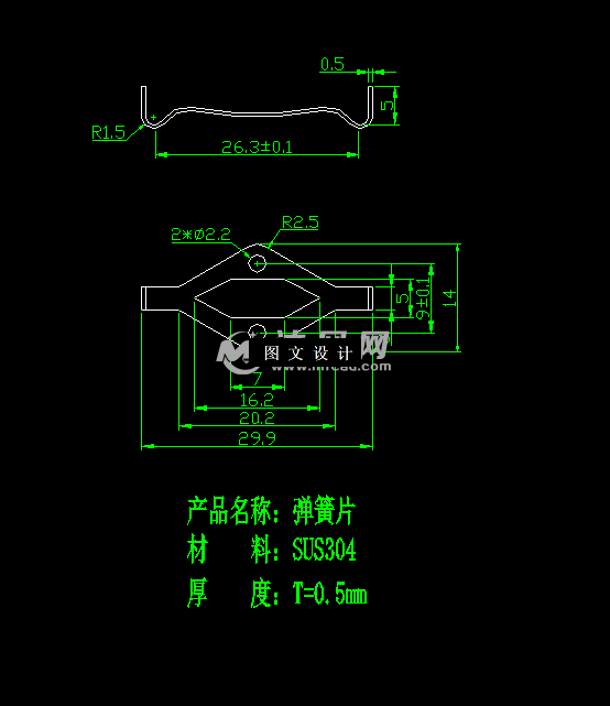 弹簧片冲压模具设计图纸,本次设计主要的加工产品是弹簧片,这种属于比较小的零部件,对于结构要求不高,属于小尺寸产品,设计的主要任务是分析零件的加工要求,并且对材料的性能做出分析,结合需要加工的工序要求,确定一个合理的模具结构,本次的零件主要是通过冲裁以及弯曲,设计出整个模具图,并且选用合理的压力机设备,对主要的零件做出计算校核,完成本次的任务要求。
