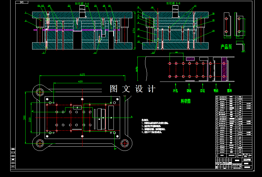 由于该加工的生产批量较大,如果把三道工序放在一起,可以大大提高工作效率,并减轻工作量,节约能源,降低成本,而且可以避免原有的加工方法中须将手伸入模具的问题,对保护操作者安全也很有利。将三道工序并在一个模具中完成,可以有以下多种不同的工艺方案:一种为先落料,然后冲孔和弯边在同一个工步;另一种为,冲孔在同一工步首先完成,然后进行弯边。再就是先冲孔,弯边,然后落料。