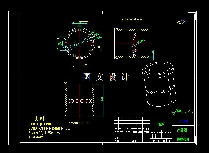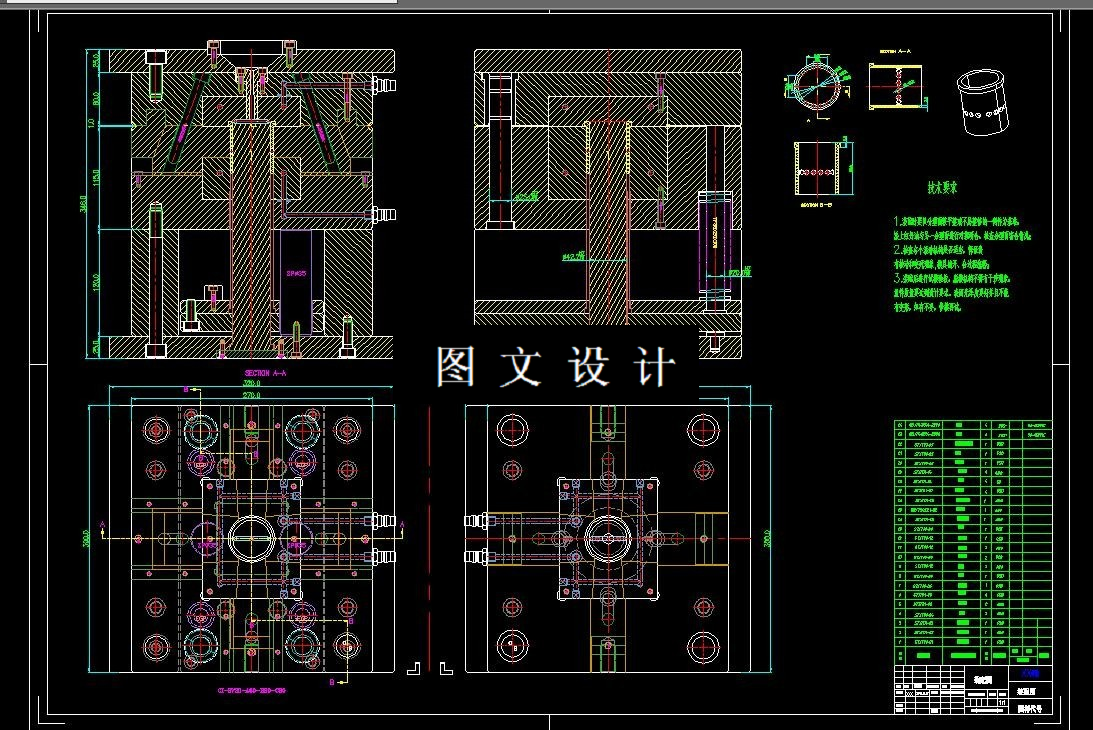 本次设计的产品分油套塑件,具有重量轻,强度高,耐腐蚀,易清洁等 特点,为大批量生产产品。本次设计在针对产品进行工艺性分析后,确定模具分 型面、 型腔数目、 浇口形式、 位置大小; 其中最重要的是确定型芯和型腔的结构, 以及它们的定位和紧固方式。此外还进行了脱模机构的设计,合模导向机构的设 计,冷却系统的设计