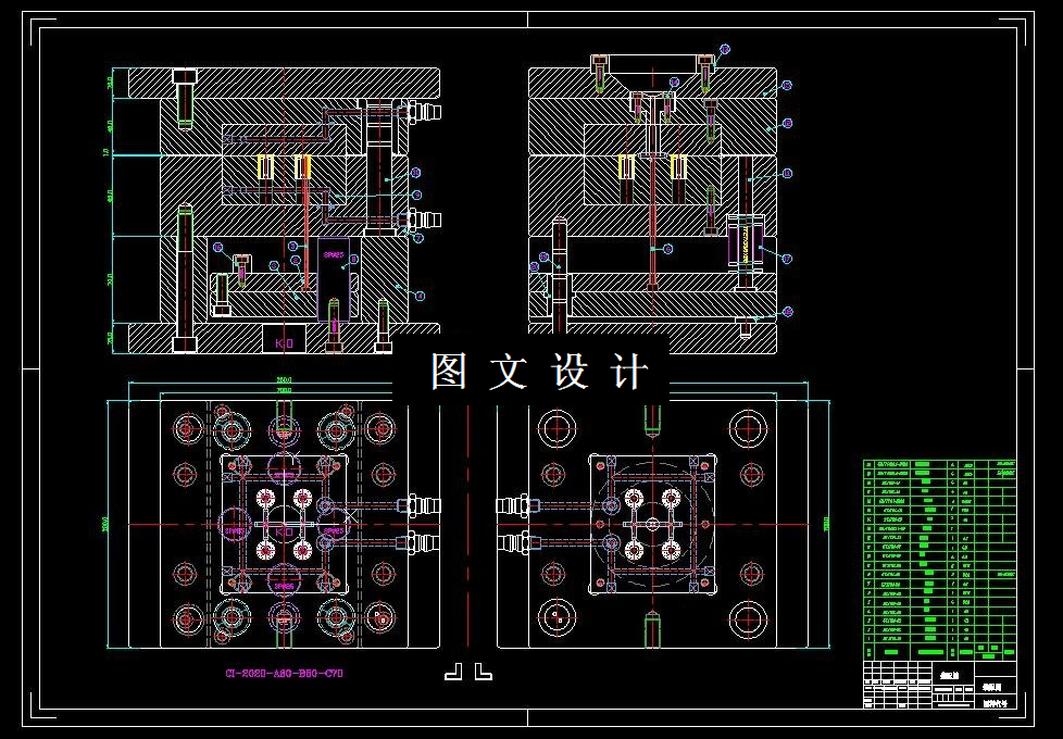 依据产品的数量和塑料的工艺性能确定塑件采用注射成形法生产。该产品设计为大批量生产,故设计的模具要有较高的注塑效率,浇注系统要能够自动脱模,此外为保证塑件表面质量采用侧浇口,因此选用单分型面注射模,侧浇口自动脱模结构。模具的型腔采用一模四腔平衡布置,浇注系统采用侧浇口成形,推出形式为十六推杆推出机构完成塑件的推出。由于塑件的工艺性能要求注塑模中有冷却系统,因此在模具设计中也进行了设计。