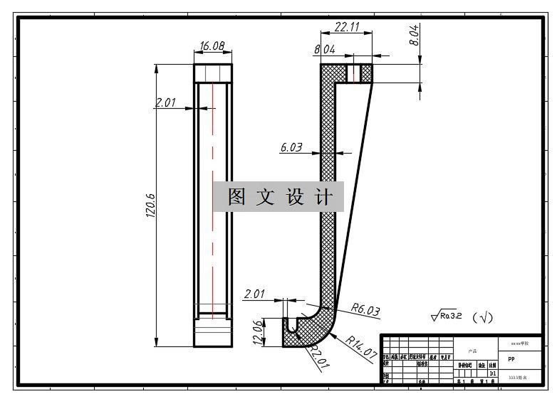 支架工件如图所示,它是工业用品,要求大批量生产,对尺寸,外观和光洁度无具体要求,根据该塑件结构特点,模具设计采用脱模板顶出结构,也是工厂里比较简单,实用,常见的顶出结构。为了使模具与注射机相匹配以提高生产力和经济性、保证塑件精度,并考虑模具设计时应合理确定型腔数目,由于体积比较大,该模具选择一模两腔。