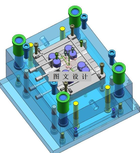 模具设计原理:开模时,动模后退,当推板与注射机上顶杆接触时,动模继续向后移动,推出机构开始工作;推杆固定板带着推杆、斜顶一起向前移动,推杆将塑件从型芯推出,斜杆同时进行内侧抽芯,塑件下落。 合模时,动模前移,推板与注射机上顶杆脱离,在复位杆弹簧的作用下,推杆和斜顶先复位,最后动模和定模合模,准备进行下一次注射。