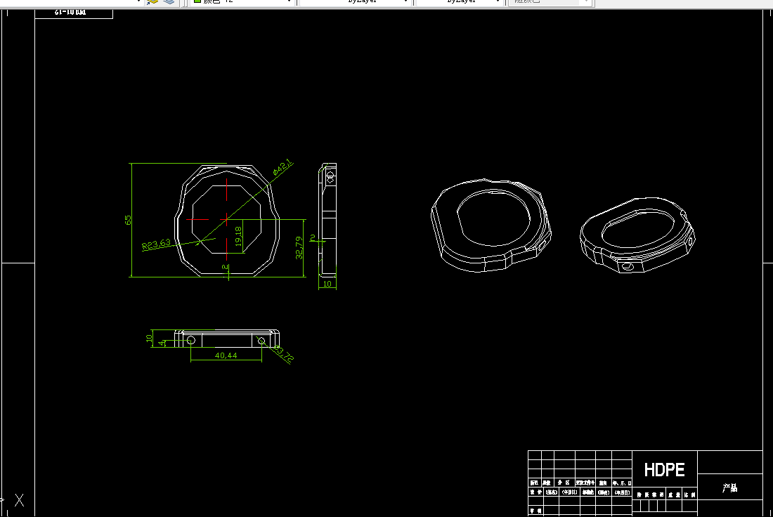 介绍了在AUTOCAD、UG环境下,塑料外壳的注射模具设计与加工过程。着重分析了设计的整个流程,包括产品二维和三维造型及材料性能分析。然后进行成型零件设计、侧向分型与抽芯机构设计等部分,以及注射成型设备的选用和成型工艺参数的确定,在此基础上对模具零部件进行细部设计修改。塑料外壳采用侧浇口,利用外侧抽芯,推杆顶料,推件板完成脱模,该模具结构紧凑,工作可靠,生产效率高。最后分析了模具的工作过程,对模具结构与注射机的匹配进行了校核,编制主要成型零件的工艺规程并进行数控加工。