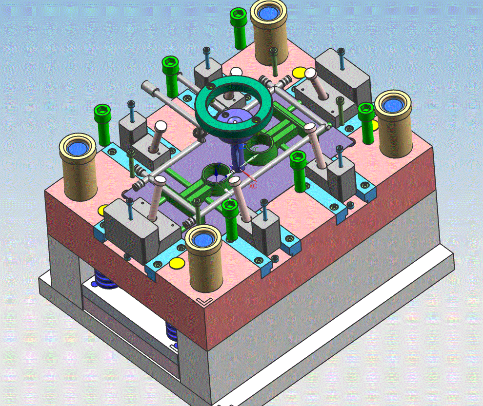 根据塑料制品的要求,了解公共汽车手扶钢管支架的用途,分析公共汽车手扶钢管支架塑件的工艺性、尺寸精度等技术要求,选择公共汽车手扶钢管支架塑件制件尺寸。确定模具结构并选择注塑机,初步确定工艺条件、浇注系统和冷却系统,模具为一模两腔,侧浇口,采用斜导柱抽芯机构成型塑件上多处侧孔结构,本资料含有模具装配图、模具三维、多张模具零件图