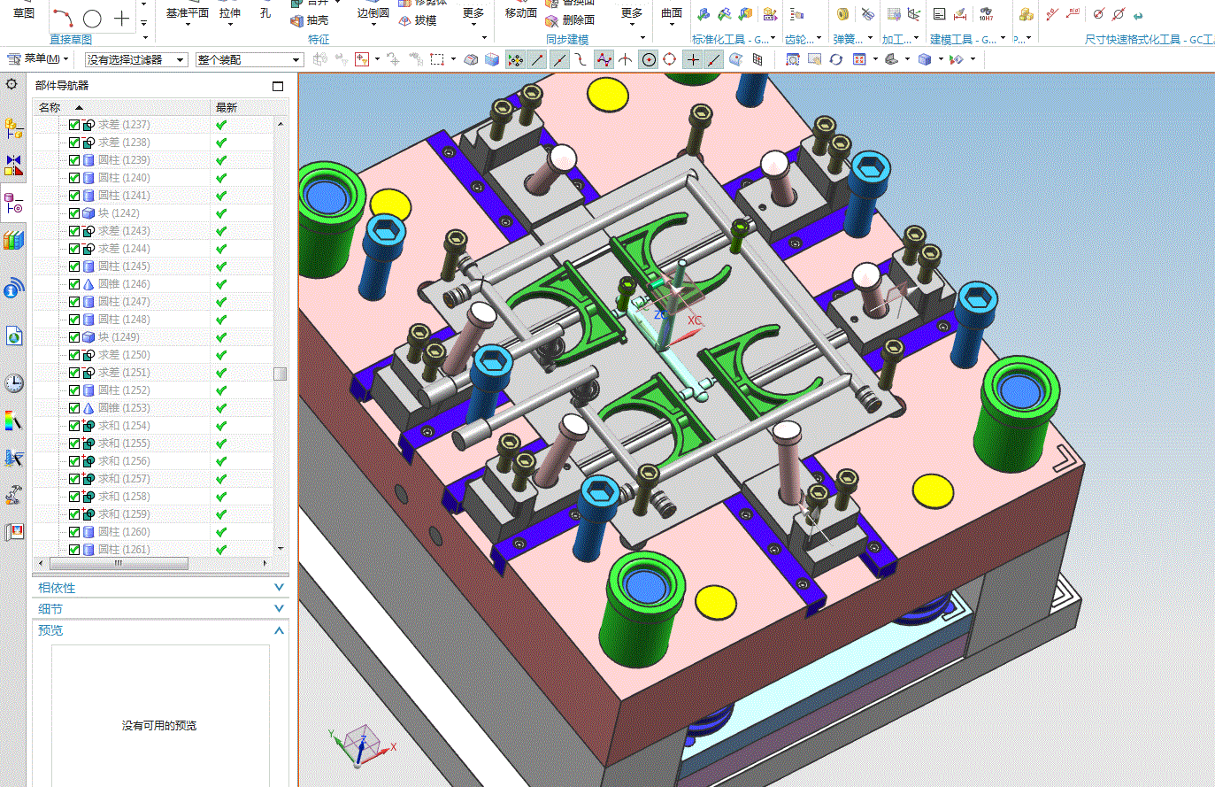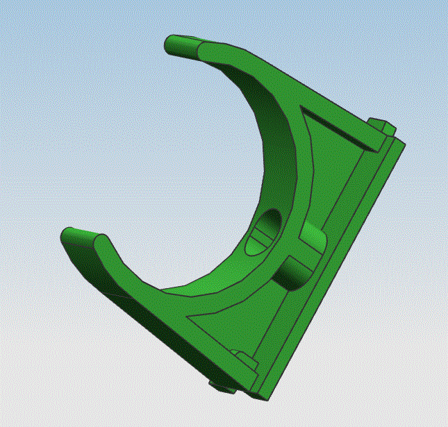 参考资料PVC管管夹注塑模具设计主题。模具为一模四腔,侧浇口,塑件上侧凹结构采用斜导柱抽芯机构成型,本资料含有模具装配图、模具三维、多张模具零件图